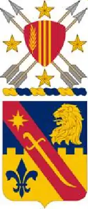 - The red and gold shield represents the Republic of Vietnam Cross of Gallantry with Palm award.