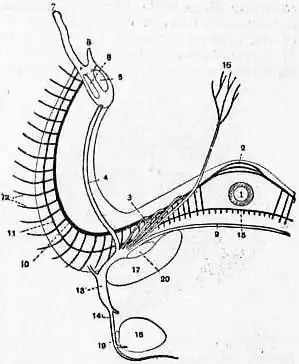 16. Median pallial nerve of dorsal lobe of mantle.