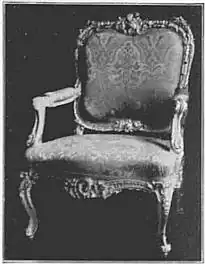 Fig. 13.—Arm-chair of carved and gilt wood with stuffed back, seat and arms. French, Louis XV. style. |