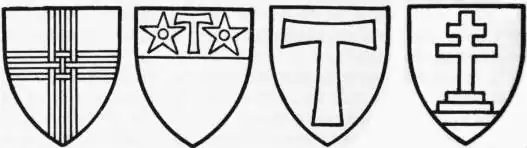 From the first the Cross was a common bearing on English shields, “Silver a cross gules” being given early to St George, patron of knights and of England, for his arms; and under St George’s red cross the English were wont to fight. Our armorial crosses took many shapes, but the “crosses innumerabill” of the Book of St Albans and its successors may be left to the heraldic dictionary makers who have devised them. It is more important to define those forms in use during the middle ages, and to name them accurately after the custom of those who bore them in war, a task which the heraldry books have never as yet attempted with success.