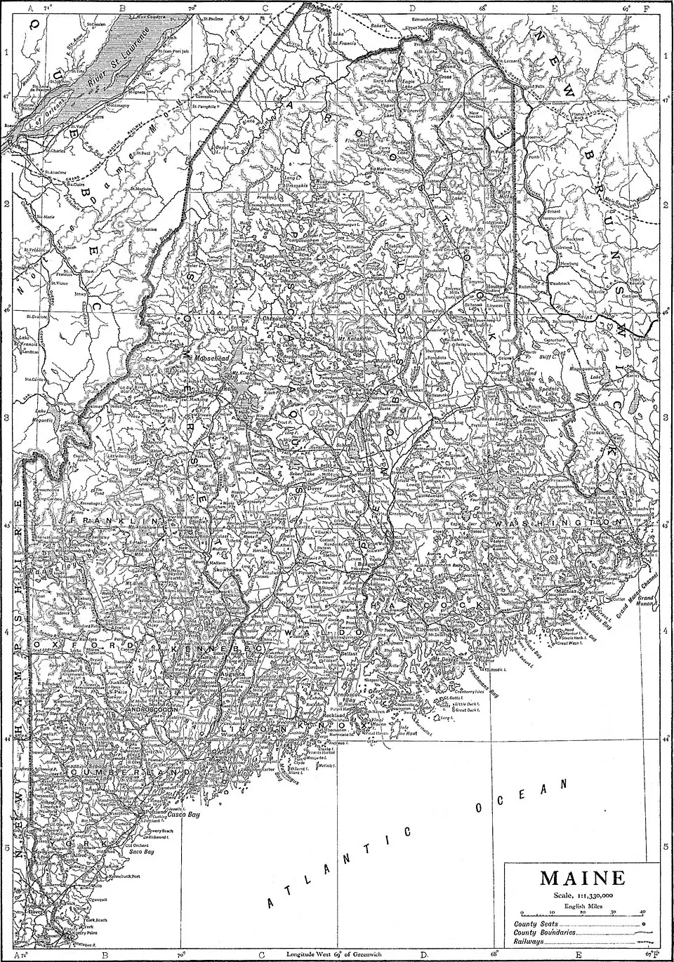 See S. L. Boardman, Climate, &c., of Maine (Washington, 1884); Walton Wells, The Water Power of Maine (Augusta, 1869); G. H. Hitchcock, General Report on the Geology of Maine (Augusta, 1861); G. H. Stone, The Glacial Gravels of Maine and their Associated Deposits (Washington, 1899); T. Nelson Dale, The Granites of Maine (Washington, 1907), being Bulletin 313 of the U. S. Geological Survey; B. F. De Costa, Sketches of the Coast of Maine and Isle of Shoals (New York, 1869); H. D. Thoreau, The Maine Woods (Boston, 1881); L. L. Hubbard, Woods and Lakes of Maine (Boston, 1883); T. S. Steele, Canoe and Camera, a Two Hundred Mile Tour through the Maine Forests (New York, 1882); William MacDonald, The Government of Maine, Its History and Administration (New York, 1902); Maine Historical Society Collections (Portland, 1831–); W. D. Williamson, History of the State of Maine (Hallowell, 1832); J. P. Baxter, Sir Ferdinando Gorges and his Province of Maine (Boston, 1890) and George Cleeve of Casco Bay (Portland, 1885); George Folsom, History of Saco and Biddeford, with notices of other Early Settlements and of the Proprietary Governments in Maine (Saco, 1830); J. L. Chamberlain, Maine, Her Place in History (Augusta, 1877); E. S. Whitin, Factory Legislation in Maine (New York, 1908).
