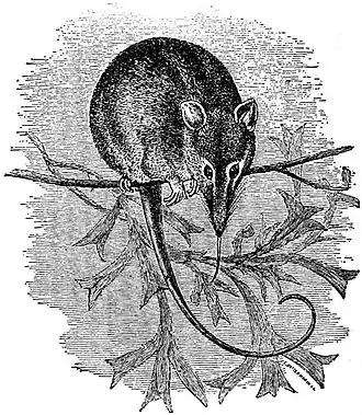 The genus Phascologale comprises a number of small marsupials, none exceeding a rat in size, differing from the dasyures in possessing an additional premolar—the dentition being i. 4/3, c. 1/1, p. 4/4, m. 3/3: total 46—and in having the teeth generally developed upon an insectivorous rather than a carnivorous pattern, the upper middle incisors being larger and inclined forward, the canines relatively smaller, and the molars with broad crowns, armed with prickly tubercles. The muzzle is pointed. Ears moderately rounded, and nearly naked. Fore feet with five sub-equal toes, with compressed, slightly curved pointed claws. Hind feet with the four outer toes sub-equal, with claws similar to those in the fore feet; the first toe almost always distinct and partially opposable, though small and nailless, sometimes absent.