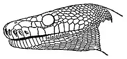 | Fig. 1.—Head of Boa canina. | Fig. 2.—Head of Python reticulatus. |