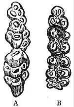 The tongue presents little variability in length, being short and compressed, with a blunt tip, which is never protruded beyond the incisors. In most species there are three circumvallate papillae at the base, and the apical portion is generally covered with small thread-like papillae, some of which in the porcupines become greatly enlarged, forming toothed spines. The stomach varies in form from the simple oval bag of the squirrels to the complex ruminant-like organ of the lemmings. In the water-rat and agoutis it is constricted between the oesophagus and pylorus; while in the dormouse the oesophagus immediately before entering the stomach is much dilated, forming a large egg-shaped bag with thickened glandular walls; and in certain other species, as in Lophiomys and the beaver, glandular masses are attached to and open into the cardiac or pyloric pouches. All rodents, with the sole exception of the dormice, have a caecum, often of great length and sacculated, as in hares, the water-rat and porcupines; and the long colon in some, as the hamster and water-rat, is spirally twisted upon itself near the commencement. The liver is divided in the typical manner in all, but the lobes are variously subdivided in different species (in Capromys they are divided into minute lobules); and the gall-bladder, though present in most, is absent in a few. In most species the penis (which is generally provided with a bone) may be more or less completely retracted within the fold of integument surrounding the vent, and lie curved backwards upon itself under cover of the integument, or it may be carried forward some distance in front of the anal orifice, from which, as in voles and marmots, in the breeding-season, it is separated by the prominent testicular mass. The testes in the pairing-season form projections in the groins, but (except in the Duplicidentata) do not completely leave the cavity of the abdomen. Prostate glands and, except in the Duplicidentata, vesiculae seminales are present in all. The uterus may be double, each division opening by a separate os uteri into a common vagina, as in Leporidae, Sciuridae, and Hydrochoerus, or two-horned, as in most species. The teats vary in number from a single abdominal pair in the guinea-pig to six thoracic-abdominal pairs in the rats; while in the Octadontidae and Capromyidae they are placed high up on the sides of the body.