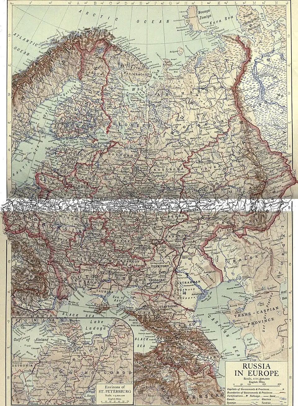 RUSSIA (Rossiya), the general name for the European and Asiatic dominions of the “Tsar of All the Russias.” Although the name is thus correctly applied, both in English and Russian, to the whole area of the Russian empire, its application is often limited, no less correctly, to European Russia, or even to European Russia exclusive of Finland and Poland. The use of the name in its most comprehensive sense dates only from the expansion of the empire in the 19th century; to the historian who writes of the earlier growth of the empire, Russia means, at most, Russia in Europe, or Muscovy, as it was usually called until the 18th century, from Moscow, its ancient capital. The origin of the term “Russia” has been much disputed. It is certainly derived, through Rossiya, from Slavonic Rus or Ros (Byzantine Ῥῶς or Ῥώσοι), a name first given to the Scandinavians who founded a principality on the Dnieper in the 9th century; and afterwards extended to the collection of Russian states of which this principality formed the nucleus. The word Rus, in former times wrongly connected with the tribal name Rhoxolani, is more probably derived from Ruotsi, a Finnish name for the Swedes, which seems to be a corruption of the Swedish rothsmenn, “rowers” or “seafarers.”