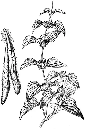 The only European Dioscorea is that known as D. pyrenaica, a native of the Pyrenees, a remarkable instance of a species growing at a long distance from all its conveners. True yams must not be confounded with the sweet potato, Ipomoea Batatas, as they sometimes are in London markets. The common black bryony (Tamus communis) of hedges in England is closely allied to the yams of the tropics, and has a similar root-stock, which is reputed to be poisonous.