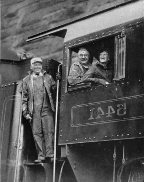 That was one of the cherished experiences. The second found me in a locomotive cab of the Pennsylvania Railroad, bedecked in overalls, goggles and cap. The ride from Pittsburgh to Altoona, round the Horseshoe Bend, was not so fast as flying, about as noisy, and much dirtier. Also far more hot. If and when my feminine readers take up locomotive travel, let them wear heavily soled shoes. Mine were fairly thin—and the fire box heated the floor below where I sat when I couldn't stand and stood when I couldn't sit. Even the photographs, incidental to these experiences, did not detract from my enjoyment. However, some of them clipped subsequently from newspapers, arrived thoughtfully labelled bologna.
