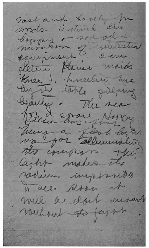 TWO CHARACTERISTIC PAGES FROM THE TRANS-ATLANTIC LOG BOOK. THE DIFFICULTY OF WRITING IN THE DARK IS EXEMPLIFIED BY THE PENMANSHIP OF THE SECOND PAGE