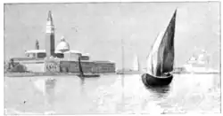 Vittorio, accustomed to that particular kind of attention which the tourist bestows impartially upon man or gondola, the briccoli whose clustering posts mark the channels in the lagoon, or the towers of the mad-house rising from yonder island,—had continued his unswerving gaze straight over the head of the Signorina. At the sound of his name his bearing changed. Lifting his hat, he took a step forward, and, still plying the oar with his right hand, he said: "Over yonder is Sant' Elisabetta del Lido, where the tourists go. But the Lido reaches for miles between us and the sea,—as the Signore will tell you," he added, with the careful deference that the Colonel knew so well.