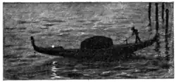 He had come up, ostensibly to write some letters, but instead of doing so, he lighted a cigar, and seated himself at the window, watching the swoop of the rain along the hurrying waters of the Canal. The tide was coming in and the wind was with it. One gondola at the ferry was struggling across the current, with difficulty held to its course by the efforts of its straining oarsman. The passengers had taken refuge under the felze, or gondola hood. Impatient of the slow progress of the boat, the Colonel looked down into the hotel-garden directly beneath his windows, which was drowned in a moist blur, that only seemed intensified where it focused about the electric lights. Over there again, across the Canal, stood the great Salute, showing ghostly and unreal in its massive whiteness, half obliterated by the driving rain. It would have seemed that the most perfunctory letter-writing might have been an improvement upon such a prospect as that. Yet the Colonel sat on, puffing in a desultory manner at his excellent cigar, and reflecting that another five years had gone by.