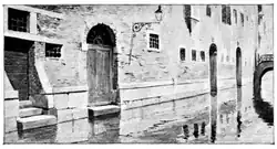 The gondola was making its way down narrow canals, whose placid water found the loveliest Gothic windows and hanging balconies to reflect, and under innumerable bridges, each more delectable than the last. Now and then they stopped at some doorway opening upon the water, where they landed, and, passing through a ware-room golden with heaps of polenta, or dusky with bronzes and wrought iron, they came out into a court-yard embellished by an exquisite old stone staircase, with quaint carved balustrade and leisurely landings, where beauteous dames of bygone centuries may have paused, as they descended, decked in rich brocades and costly jewels. Or again, an antique well-head, half-concealed by tools and lumber, kept its legend in faithful bronze or marble. The Madonnas, under their iron canopies looked down, serene and beneficent, standing, here, above a little frequented court; there, over the gateway of an old palace. There was one which Pauline was the first to espy, as they approached it under the arch of a bridge. The figure was upon the angle of a wall, glassed just where two canals met at her feet. Above her head was a square canopy, over the edge of which delicate green vines and tendrils waved, while in and out among them, tiny birds fluttered and chirped.