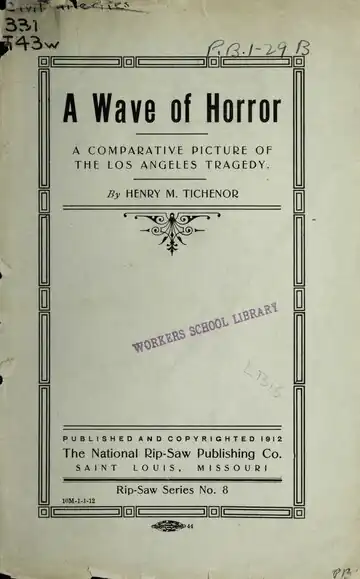 This contribution to Socialist propaganda literature is not intended as a mere production for the passing moment, based, though it largely is, on a passing incident. The writer hopes it will grow in value, as an expose of Capitalism, as the Socialist movement grows. The Los Angeles tragedy is only one of the countless blots that stain a vicious arrangement of human society—a society that is openly perpetuated by strife and warfare. Were it necessary, volumes could be written of the awful tales of horror that Capitalism has been guilty of in all times. The object has been in this little offering to draw a comparative picture that will condemn class rule and its resulting wars. I trust that this humble effort will meet the approval of my comrades, and that it will be largely placed in the hands of non-Socialists and so stimulate them to a wider investigation of the Cause so dear to us.