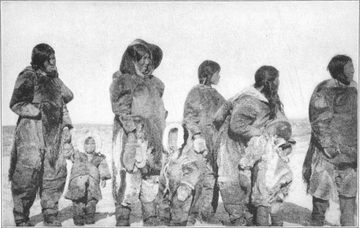 We had hardly made ourselves known to them when I observed that the women were gathering in an odd sort of order about our sledges; and soon they began marching round them in solemn procession. On enquiring the reason for this I was informed that it was a ceremony designed to ward off any possible danger from the "spirits" which had accompanied us on our way unknown to ourselves.