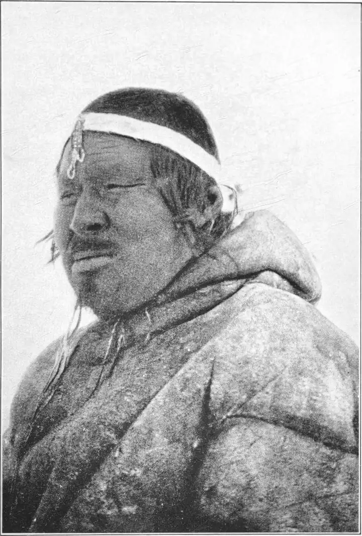 We got them in and thawed them up a little, and after a good meal they were able to give an account of themselves. They were two brothers from the neighborhood of the Magnetic Pole, out with a load of fox skins which they were going to trade for old guns with the natives at Pelly Bay. Qaqortingneq, the elder, was turning back now; and we decided to go back with him to visit his tribe.