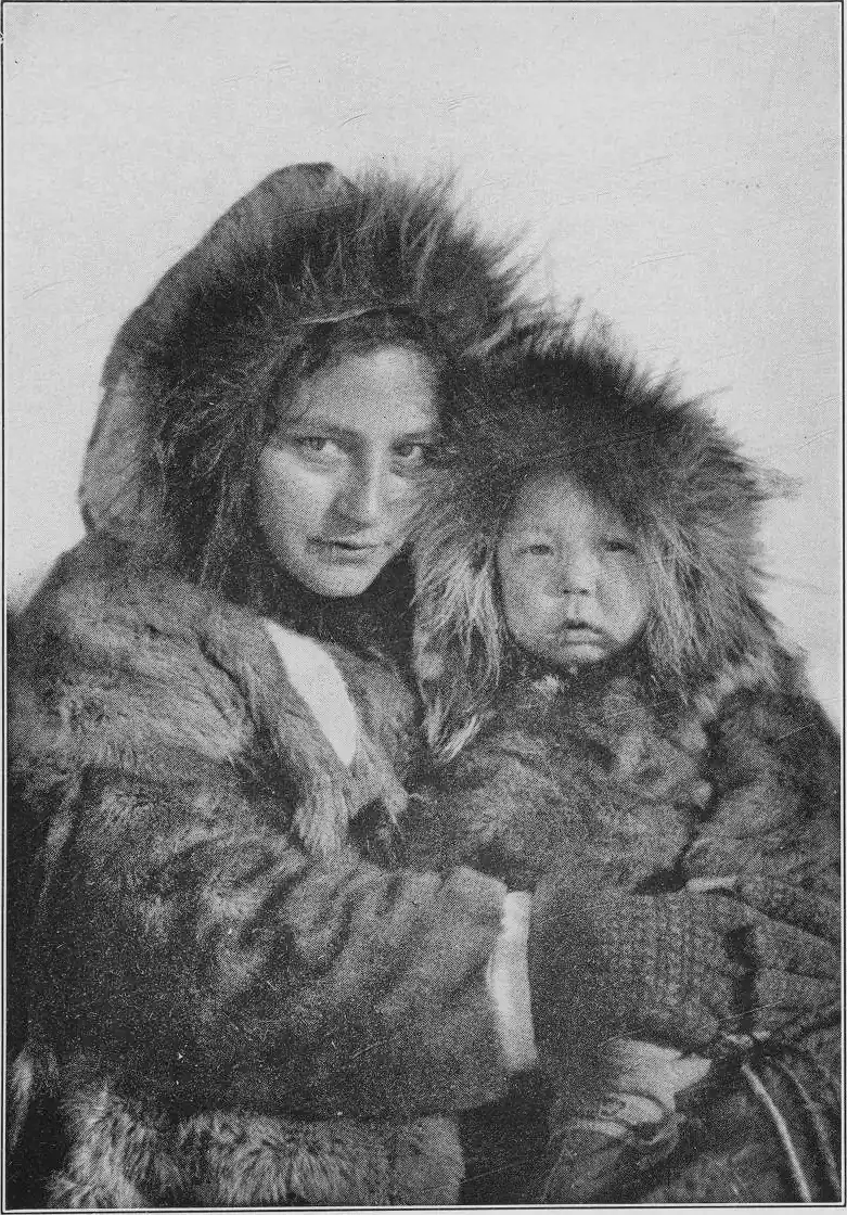 These inland journeys brought them from very early times into contact with the Indians; and here for the first time throughout the expedition I learned that cases of intermarriage between Indians and Eskimos had formerly been common; true, it was marriage by capture, but both Indians and Eskimos agree as to its having taken place. I have often in the foregoing referred to the Indians in the terms used by the Eskimos in describing them; the old stories in particular represent them as cruel, bloodthirsty and treacherous. At Single Point, I met a young Indian woman, the wife of the Hudson's Bay Company's Manager; she had been born and brought up among the Takudh Indians. She