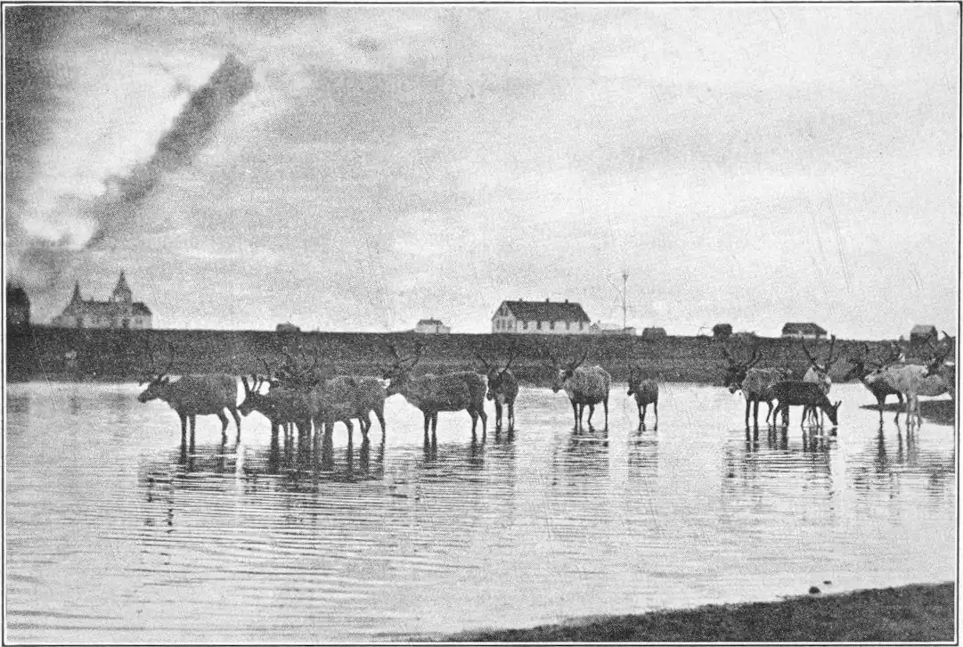 This period, moreover, was not so far distant but that I was able to obtain my information from the elders, men and women, whose fathers had themselves taken part in such fights. Russian trading methods proved of little advantage to the natives; indeed, they were well on the way to extermination when the United States, in 1867, bought the whole territory for a sum of $7,200,000; probably the best deal of its kind on record. In 1890, the Bureau of Education set to work to improve the conditions of the native population, and now, after 35 years, we find them industrious, ambitious and independent, a wonderful testimony to the value of systematic educational methods. A point of great importance in material respects was the introduction of tame reindeer from Siberia. Dr. Jackson, the Alaskan Eskimos' greatest benefactor, succeeded in getting some 1280 animals brought over, and there are now close on half a million, with every prospect of running into millions before long.
