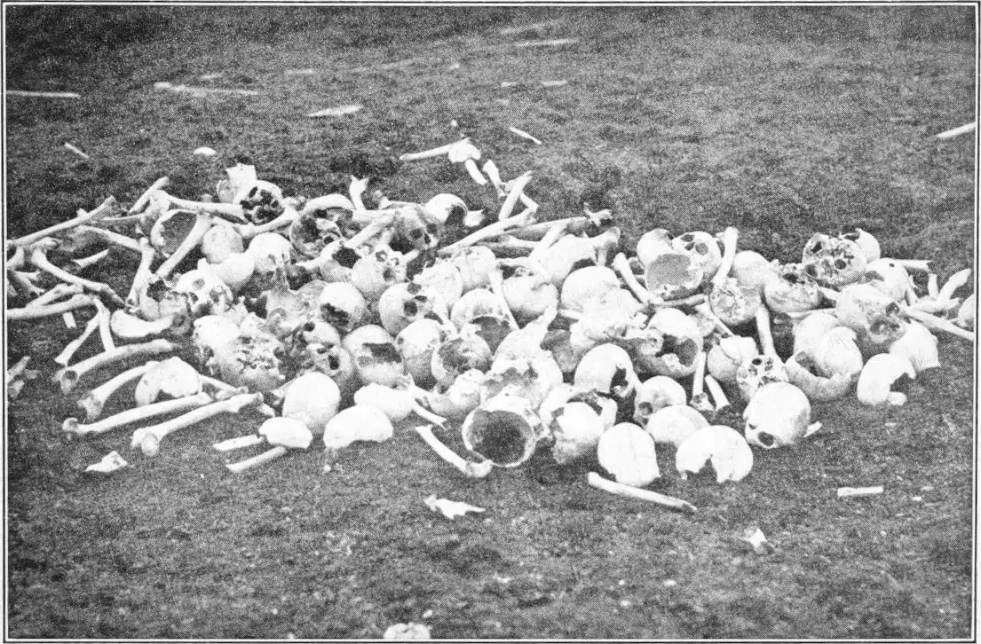 Point Hope, or Tikeraq, "the pointing finger," is one of the most interesting Eskimo settlements on the whole coast of Alaska, and has doubtless the largest collection of ruins. The old village, now deserted, consists of 122 very large houses, but as the sea is constantly washing away parts of the land and carrying off more houses, it is impossible to say what may have been the original number. Probably, the village here and its immediate neighborhood had at one time something like 2000 souls, or as many as are now to be found throughout the whole of the North-west Passage between the Magnetic Pole and Herschel Island. Human bones are scattered about everywhere, and Mr. Thomas informed me that he had himself during his short term of residence seen to the interment of 4000 skulls!