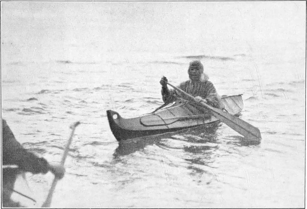 April is the month of getting out kayaks again. Winter hunting has now ceased altogether, the ice scatters, and the walrus begin to make their appearance. Seal and ribbon seal are harpooned from the kayak. This is the commencement of the spring season.