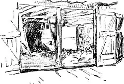 I know of few things more inviting than to step up to the wide-open doors and look into the shop. The floor, half of hard worn boards half of cinders, the smoky rafters of the roof, the confusion of implements on the benches, the guns in the corners—how all of these things form the subdued background for the flaming forge and the square chimney above it.