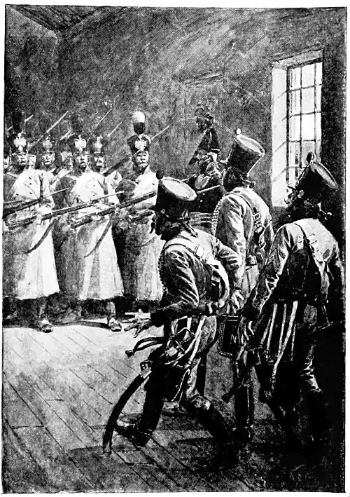 "Right in front of us was drawn up a triple line of Russian grenadiers"