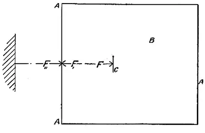 Let us suppose (Fig. 1) a body which we will take to be a normal plane C, acted upon by a force F in an enclosure A,