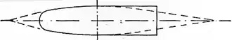 The primary importance of easy shoulder lines has been long recognised as a fundamental feature in the design of projectiles. A full-sized section of a Metford .303 bullet, illustrating this point, is given in Fig. 18, and a streamline form of which it may be regarded as a "mutilation" is indicated by the dotted line.