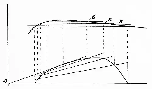 The result is thus obtained in a more direct manner, all trigonometrical transformations being dispensed with; the original demonstration is, however, of a more exact nature and is based on a clearer conception of the conditions involved. The identity of the two methods may be demonstrated geometrically by showing that the shaded areas of Fig. 124 are proportional to the ordinates and of Fig. 125, a matter of perfect simplicity.