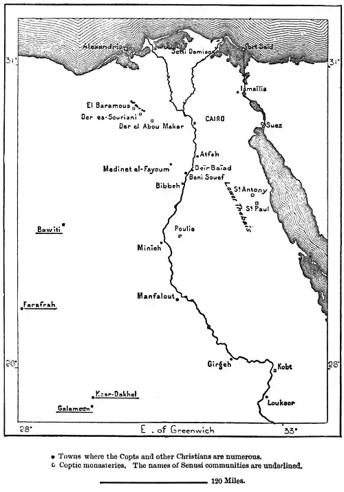 In an often inundated plain which stretches south-west of the city in the direction of Lake Burlos, there is another holy place, where miracles continue to be wrought, not, however, by Mussulman hajis, but by a female Christian saint. This is the Coptic convent of Setti-Damiana, or "Our Lady Damian."
