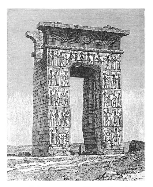 The enclosure surrounding the great temple is no less than 80 feet thick,[7] and the modern observer may well ask how such a metropolis could have been raised in the midst of these half-submerged lands, these swamps, and quagmires, and saline depressions now skirting Lake Menzaleh. But the district seems to have undoubtedly undergone vast changes since the oldest recorded times, changes which should probably be attributed to local subsidence.