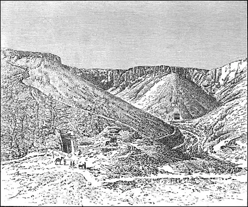 Although described as a "detached fragment of Egypt," the Dakhel oasis nevertheless differs from it in its vegetation. Here are found plantations of olives, lemons, and oranges interspersed among the palm groves, and producing 4he finest fruits of the oases. The inhabitants of Dakhel have a few horses, but they have failed to breed camels, in consequence of a poisonous fly that infests the district during the summer, and whose bite is fatal to this animal. To the want of camels is mainly attributed the profound ignorance of the natives respecting the wilderness stretching westwards, For them the sandy shores of their islet are like those of the trackless ocean on which no sail is seen.