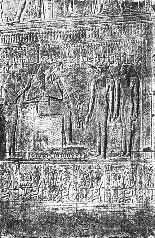 "Son of Isis and Osiris." An avenue of pylons leads to the sanctuary, whose bas-reliefs present an extraordinary variety of historical and other figures. In this respect the temple of Darius is altogether unique.[5]