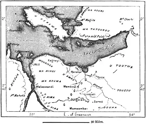 The kingdom of Karagwé occupies west of Lake Victoria an area of about 6,000 square miles, being limited southwards by U-Zinza, west and north by the Tanguré