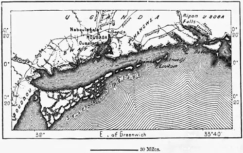 HE basin of the Victoria Nyanza, including that of the Upper Nile as far as its passage across the Albert Nyanza (M'wutan Nzigeh), comprises a superficial area which may be estimated at some 170,000 square miles, although this estimate cannot claim to be more than a very rough approximation to the reality. Pending a more exact