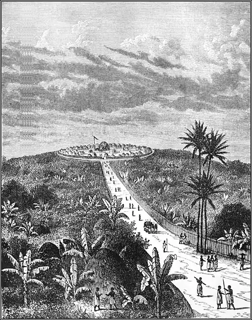 The capital changes according to the king's caprice. In 1862, at the time of Speke and Grant's visit, the royal residence was at lianda, which, for a country of large trade, would appear to be most favourably situated on the crest of the portage between the great gulf of Mwaru-Luajerri, the Murchison Bay of the English, and the river Katawana-Luajerri, which joins the Nile at Lake Ibrahim. A few scattered hamlets in the midst of ruins, which must soon disappear, are now all that remains of Banda. Rubaga is the most important present capital, lying about seven miles towards the north-west, on a hill encircled by rivulets which form the headstream of the M'werango river, flowing through the Kafu to the Nile. On the simimit of the hill, visible from afar, with its lofty gables and flagstaff, stands the king's palace, surrounded with gardens, above which appear the conic roofs of the huts inhabited by his wives and officers. Northwards another hill bears a second royal residence, surrounded by the village of Nabulagala, Stanley's Ullagala. This is the main depot of the Arab merchants, and here begins the caravan route towards M'ruli, the principal market-town of the Somerset Nile. The two most frequented ports of U-Ganda on the shores of the great lake are U-Savara, on the banks of Murchison Bay, and M'tebbi, on the gulf limited south by the Sesse Archipelago.