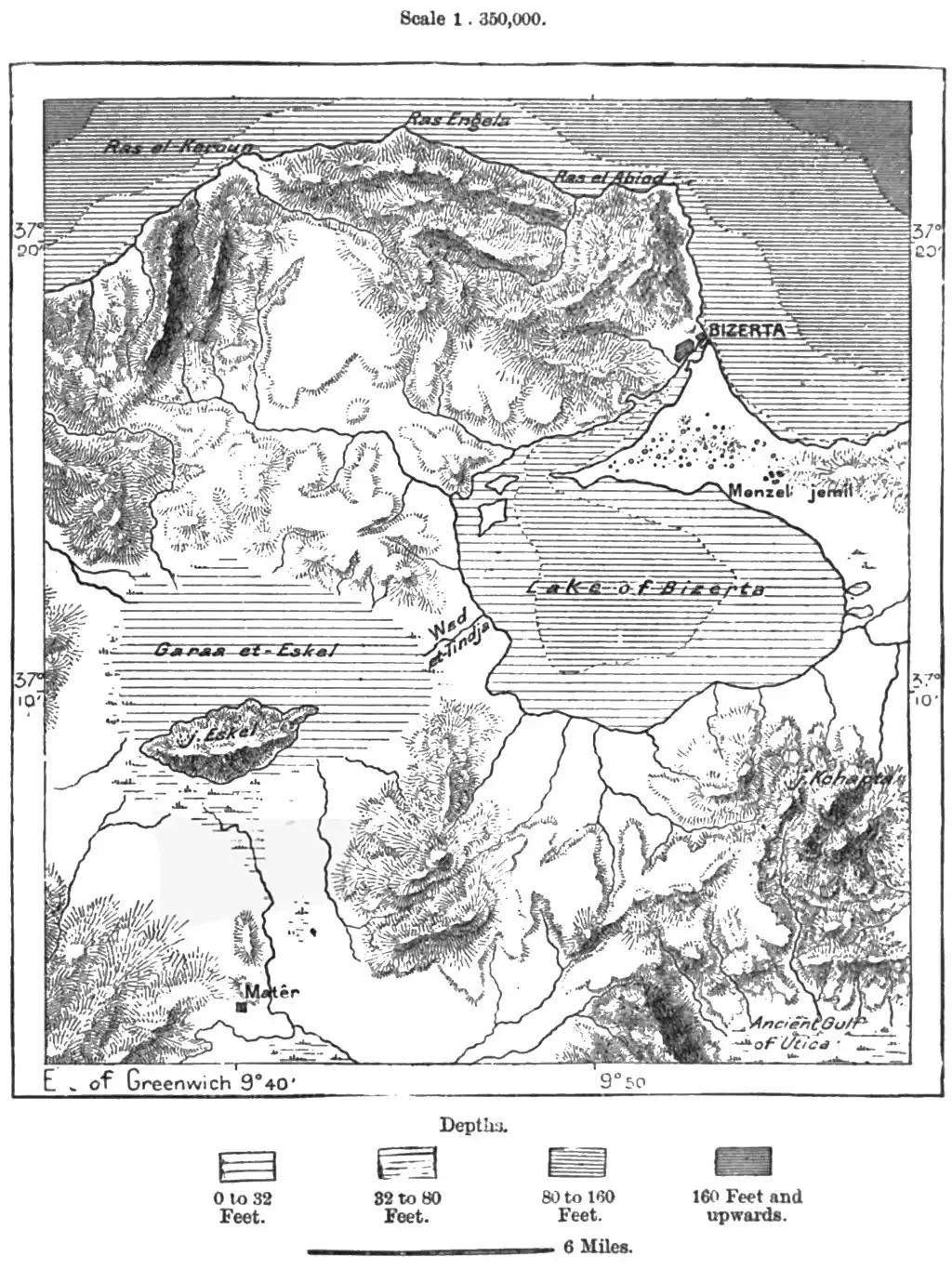 The mouth of the Mejerda, the chief river in Tunis, is separated from Lake