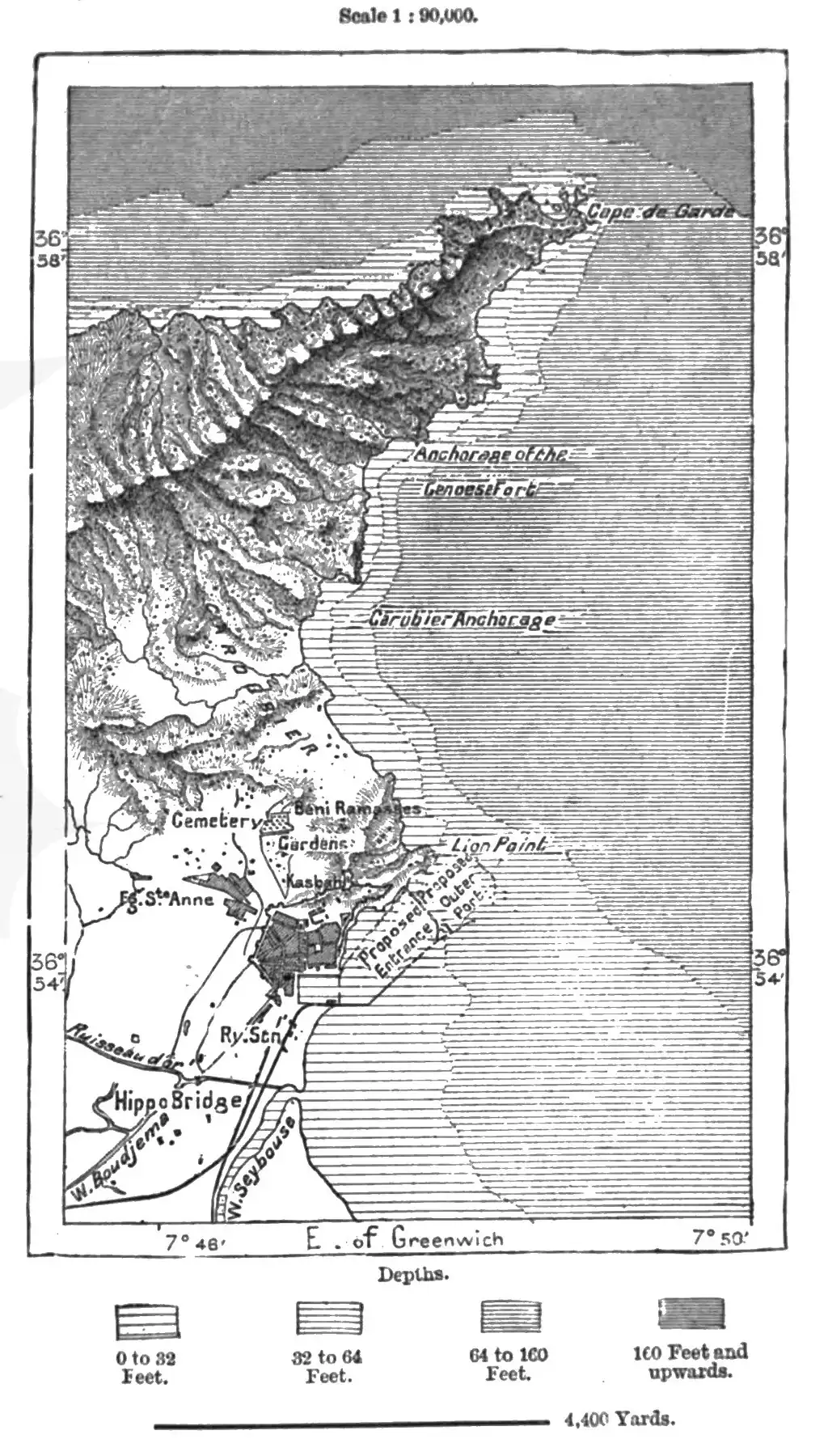As a seaport Bona enjoys great advantages. Its roadstead, well sheltered from the west and north-west winds by Cape Garde, was much frequented during