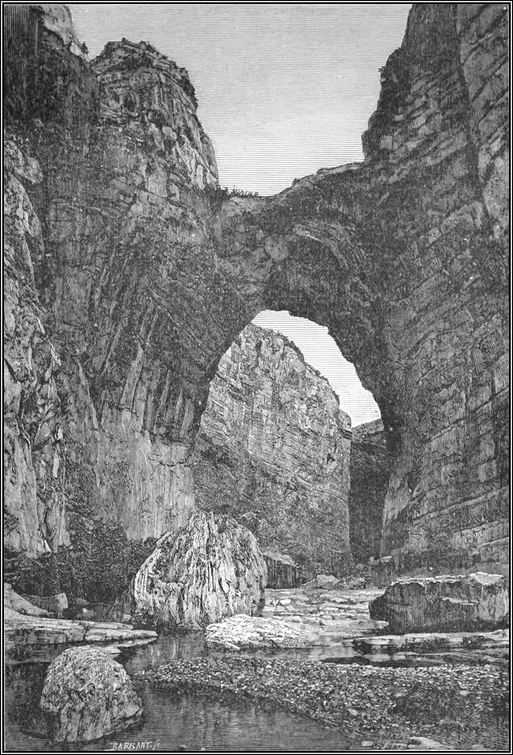 somewhat neglected. From the crest of this eminence an extensive view is commanded of the surrounding hills falling northwards in terraces down to the coast, and in the opposite direction down to the depression of Lake Fetzara. On the northern slope, between Capes Garde and De Fer, the only group of habitations is the little fishing village of Herbillon (Takush); but the southern is more thickly inhabited, thanks to the iron-mines of Mokta-el-Iadid, which yield an excellent ore, almost as highly appreciated as that of Dalecarlia, and containing 62 per cent. of pure metal. Over a thousand workmen are employed in these mines, which yield about four hundred thousand tons annually, valued at £280,000, and exported to France, England, and even the New World. But the rich deposits of copper and zine found at Ain-Barbar, in the very heart of the Edugh district, are no longer worked, owing to the extreme difficulty of cartage. CX)NSTANTINE. 246 Less than half a mile south of the Mokta-cl-Hadid works, lies the important station of Ain Mokhrn, which is unfortunately exposed to the exhalations from Jjake Fetzara. This lagoon or morass, which has a mean depth of little over 6 feet, is evidently the remains of an old inlet forming a continuation of the present Gulf of Bona across the now-dried-up plains of the Mafreg and Mebuja rivers. The question of its drainage has frequently been discussed, and should this project be carried out, over 30,000 acres of rich alluvial soil will be brought under cultiva- tion. In summer the basin is nearly dry, and it might be easily diverted to the lower Seybouse by reducing the bed of the Mebuja to a lower level than the present level of the lake. The railway connecting Ain Mokhra with Bona is soon to be continued west- wards in the direction of the station of Saint-Charles, on the Constantine-Philippe- ville line. Were it also extended to the coast by skirting the Filfila headland, the works might be resumed in the famous marble mines of this district, interrupted since the time of the Romans. In the Wed-el-Kebir basin, which flows to the gulf sheltered by Cape de Fer, the only important European town is Jemviapes, situated in a rich and well- watered district. The local Berber tribe of the Sanhejas has preserved the name formerly borne by the powerful Zenaga nation. The name of the Zenaga or Senegal River, over 2,000 miles from this place, also attests the former extension of the Berber race dispersed by the Arab invaders. CONSTANTINE. Constantine, capital of the eastern department, is one of the famous cities of Africa. From the dawn of Mauritanian history this great natural stronghold appears under the name of Cirta, that is, the * fortress," as the word is commonly interpreted. The title of Constantine, preserved by the Arabs under the form of K'sant/iiiia, was conferred on it at the beginning of the fourth century, in honour of the Emperor Constantine. The extensive ruins scattered over the district attest the important position of this ancient capital of Kumidia and centre of the Roman dominion in North Africa. But its very strength necessarily exposed it to frequent attack, and according to the local tradition, it was taken no less than eighty times. By its capture in 1837 the French secured a solid footing in the interior of the eastern Tell, and easily crushed all local risings, henceforth deprived of a common rallying-point. The city proper occupies a gently inclined rocky table, whose northern head- land rises to a height of 2,100 feet, or 360 feet higher than the opiX)sitc point. The whole terrace forms a somewhat regular trapeze, with a circuit of nearly 2 miles, and detached by deep ravines from the rest of the plateau on all sides except towards the south-west. The steep escarpments facing south-east and north-east rise precipitously above the bed of the Rummel, which plunges into these gloomy gorges soon after its confluence with the Bu-Merzug. Of the five bridges formerly connecting the two sides of the abyss, four have almost entirely disappeared; but the fifth, at the eastern angle of the cliff, has always been rebuilt. The iron arch constructed by the French engineers, at a height of 350 feet above the stream, stands on fragments of masonry of every epoch from the time of Antoninus Pius. Immediately below this bridge the Rummel disappears beneath a rocky arcade, beyond which the cliffs again fall vertically to the bed of the stream, leaving only a solitary pointed arch of remarkably symmetrical shape,