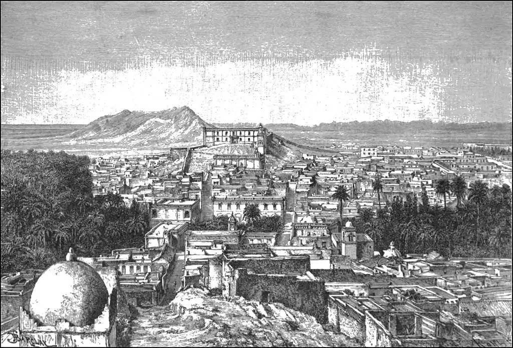 The present capital of the extensive Hodna basin is Bu-Sâda, the "Happy Abode," a picturesque place perched on the brow of a hill in the midst of gardens and palm-groves. Since the French occupation in 1849 its trade has been considerably developed, and its commercial relations now extend northwards to the coast towns, southwards to the oases of the Sahara. South of this place the powerful confederation of the Nail Arabs occupies a vast territory, stretching westwards to the Jebel Amur, eastwards to the Zibân district. These Arabs, enclosing his tomb has become the religious metropolis of the whole country, and one of the famous schools of Mussulman law in Algeria.