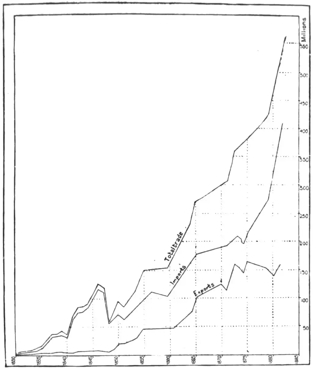 There still remain to be appropriated vast tracts, which belong to the Government under various titles, one of which, unfortunately, is that of sequestration pronounced against the tribes. But the process of concession hitherto adopted not only burdens the finances with a considerable yearly outlay, but also generally Proves more expensive to the colonists than if the concession had been purchased INDUSTRIES— TRADE. 827 ut u fair vuluution. Nor can this method of coloiiisation fail to be affected by the taint of official favouritism. In such cases personal recommendations are all- powerful, for the concessions can never be claimed as a right, and always retain the character of a favour. The concessions generally range from fifty to seventy- five acres, far too much to be projx^rly tilled by one settler ; hence the land is, to a large extent, cultivated by the aid of native hands. The same evil prevails amongst the Arab proprietors, who employ as day labourers the wretched khummes, or " tenants at fifth hand." The direct purchase of State lands is of rare occurrence ; but a general move- ment of exchanges is going on, tending to enlarge the estates of the settlers at the expense of the natives, whose ignorance often places them at the mercy of unscrupulous speculators. Men skilled in legal quibbles take advantage of their superior knowledge to get unfair possession of the territory of whole tribes. To prevent these and other abuses, aiising out of the uncertainty of titles, it would be desirable to accurately survey the Arab lands, determine the limits of each holding, and secure its full possession to the occupant. Such a survey was begun in 1873 ; but at the end of 1884 only 1,750,000 acres, or about a twentieth part of the Tell, had been dealt with — a rate of progress which would require two centuries to com- plete the work. The delay appears to be caused by the influence of a large section of Algerian society, which has a direct interest in leaving questions of proprietor- ship and titles in a general state of muddle. Industries — Trade. European industry is limited in Algiers to the supply of a few local wants, while that of the natives has been paralysed by the introduction of foreign wares. There is an almost total absence of mineral coal, and the reserves of wood and other fuel require to be managed with the greatest economy, while the apparatus introduced to utilise solar heat have hitherto yielded no results of any consequence. Hence it is not likely that Algeria can ever become a great manufacturing country. Its hides, wool, and other animal products supply the workshops of Marseilles ; alfa finds its way to England to be converted into paper ; cork is utilised in the French wine trade ; the Beni-Safi and Ain-Mokhra mineral ores are exported to the foundries of Europe and the New World ; the salines on the coast cannot competo with those of France, while the vast salt deposits in the shotts of the plateaux are used only by the surrounding tribes. The mineral and thermal springs, which are scattered abundantly over the whole region, offer efficacious remedies for the most diverse maladies, but hitherto a few only have been frequented by Eurojieim invalids. The annual movement of trade between Algeria and other countries, France included, already exceeds £20,000,000. Since the year of the conquest, the mean price of its produce has increased threefold, and its exchanges nearly a hundred- fold. But the imports have always exceeded the exports, and this relation must continue as long as Algeria is occupied by a large army supplied from the mother country, and the colonists take months and years to pay for their European wares by the products of their plantations, At the same time, the relative increase in the exports keeps pace with that of the imports, and Algeria already takes the eighth place in the extent of its commerce with France. The ports of Bona, Philippeville, Bougie, Algiers, Arzeu, and Oran are amongst the most frequented in the Western Mediterranean waters, and the annexation of Tunis has given a great stimulus to the commercial movement with the interior. Some trade is also done across the frontier with Marocco; but it is mainly of a contraband character, and almost entirely in the hands of the Jews. But south of Wargla and Sûf all intercourse with the Saharian oases is for the present nearly suspended. Nevertheless, after four years of total interruption, a caravan, comprising one thousand persons and three thousand camels, proceeded in 1884 from the Ben-Khelil wells, in South