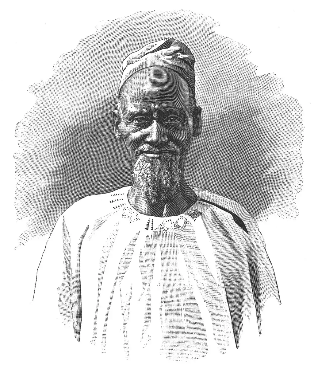 Fugumba, the holy city of Futa-Jallon, a group of a thousand huts some 30 miles north-west of Timbo in the valley of the Téné, which flows either to the Bafing or to the Falémé, is so embowered in trees that none of the surrounding heights command a complete view of the place. Here the conquering Fulahs erected the first mosque in this region, a lofty conic structure, in which each new sovereign