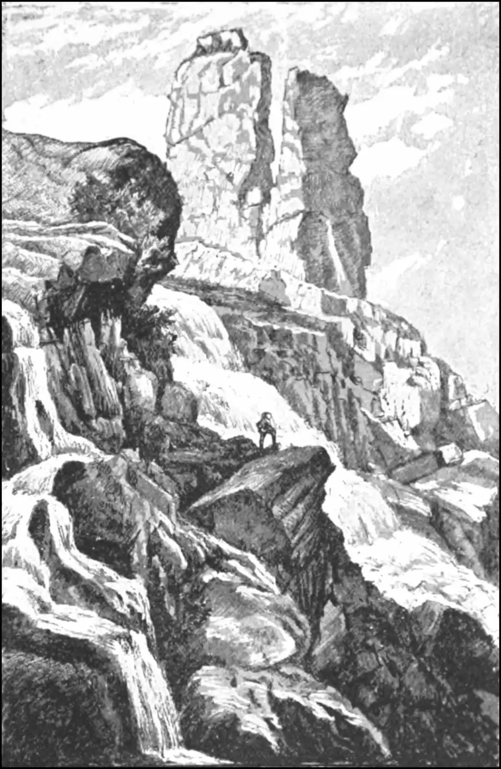 above its nearly vertical or rapidly sloping walls. The granite base of this mighty