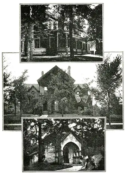 On went the procession, with thousands in line and a great multitude following, through streets heavily draped in black, and under arches of mourning, one erected by the school children who knew and loved him so well, on and on, out of the town and to the beautiful Westlawn Cemetery, where all was calm and peaceful and where his two little children had gone long years before.