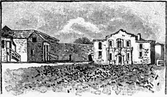 TRAVIS, William Barrett, soldier, b. in Conecuh county, Ala., in 1811; d. near San Antonio, Tex., 6 March, 1836. He was admitted to the bar about 1830. and practised in Claiborne, Ala., but became financially embarrassed, and, leaving that place about 1832, went to Texas, where he afterward took up arms in the struggle for the independence of that country. At the head of 140 men he was besieged in the old mission station of San Antonio de Valerio, which had been named Fort Alamo (see illustration), by Gen. Santa-Anna, with 4,000 Mexicans, on 23 Feb., 1836. The fort was defended for ten days, frequent assaults being repelled with great slaughter, while not a man in the fort was injured. Many appeals for re-enforcements were sent out, but only thirty-two men could get through the Mexican lines. Finally, on 6 March, three assaults were made, and in the hand-to-hand fight that followed the last, the Texans were overpowered. They fought desperately, with clubbed muskets, till only six were left, including Travis, David Crockett, and James Bowie. These surrendered under promise of protection; but when they were brought before Santa-Anna he ordered them to be cut to pieces. In the bloody defeat of the Mexicans at San Jacinto shortly afterward, the Texan battle-cry was “Remember the Alamo.” In person Travis was of fine stature, with regular features, blue eyes, and auburn hair.