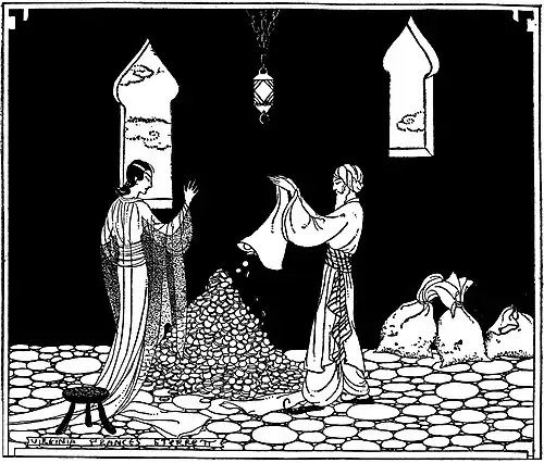 By this, Ali Baba perceived that Cassim and his wife, through his own wife’s folly, knew what he had so much reason to conceal; but what was done could not be undone. Therefore, without showing the least surprise or trouble, he confessed all, and offered his brother part of his treasure to keep the secret.