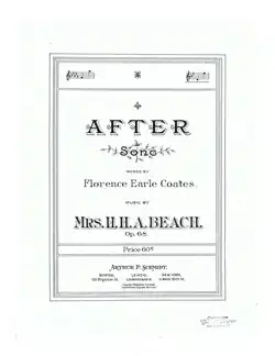 After. Op. 68. Words by Florence Earle Coates; music by Mrs. H. H. A. Beach (Amy Beach). High and low voice. Words also printed as text. Caption title. 1 score (7 p.) ; 35 cm. Boston: Arthur P. Schmidt. (1909) (external scan)