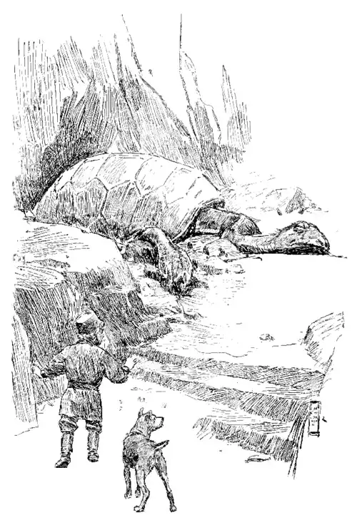 Why, I saw through it all now at a glance. It was a gigantic tortoise, eight feet long by five wide, at least, and once an inhabitant of the upper world. Thousands and thousands of years ago, by the coming of the awful fields of ice, it had been forced to fly from certain death by crawling down into these underground caverns. Here, chilled and numbed by the dampness and cold, it had fallen asleep, and would have continued to sleep on for other ages to come, had not the industrious Formifolk lighted the clusters of burning jets of gas in the monster's bedroom. Gradually the warmth had penetrated the roof of shell made thicker by earth and layers of broken rock, which the tooth of time had dropped upon it, and reached his great heart, and set it beating again slowly, very slowly, but faster and faster, until he really felt that he had awakened from his long sleep.