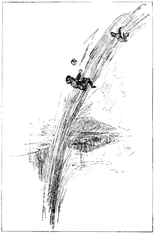All at once the deep pealing forth of the organ-like tone ceased, and in its stead came the awful sound of rushing water. Before I had time to think, it was upon me, striking me like a terrific blow from some gigantic fist wearing a boxing-glove. The next instant I was caught up like a cork on a mountain torrent, swayed from side to side, twisted, turned, sucked down and cast up again, whirled over and over, tossed and tumbled, rolled along like a wheel, my arms and legs the spokes!
