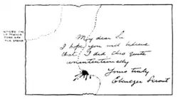 Ptolemy Jenkinson here handed this torn postcard to the company.