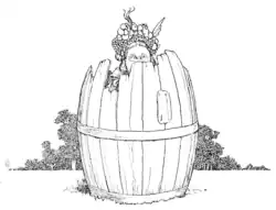 'For four more days I followed the little man without approaching a solution to this riddle. Each day he would go about his business in the usual manner and, in the evening, he would run to the barrel, into which he would speedily disappear. He came home later and later every night, until I could stand this state of things no longer; and, on the sixth day I determined never to return until I had satisfactorily cleared up this mystery. This time, instead of following my merchant through the town, I went direct to the barrel, and, hiding myself behind a bush near by, prepared to wait there all day and see what happened.