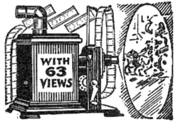 WE GIVE FREE this genuine and marvelous Moving Picture Machine, with 2 films with 63 views, for selling only 24 pckgs BLUINE at 10 cts. each. THIS IS A GREAT OFFER. You can easily earn good money with this splendid outfit. Write today for the BLUINE. When sold return the $2.40 and we will send this Moving Picture Machine and films with 63 views.